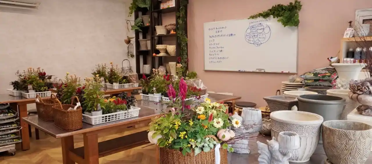 また、現在では、個人向けの教室にとどまらず、『法人向けの体験型フラワープログラム』も展開。大手企業の福利厚生イベント、商業施設での来店促進、市民講座・教育機関でのワークショップなど、年間を通じて多様な現場で導入されています。観葉植物ギャザリングの導入によって、さらに持続可能(SDGs)で癒し効果の高いプログラムへと進化を続けています。 |