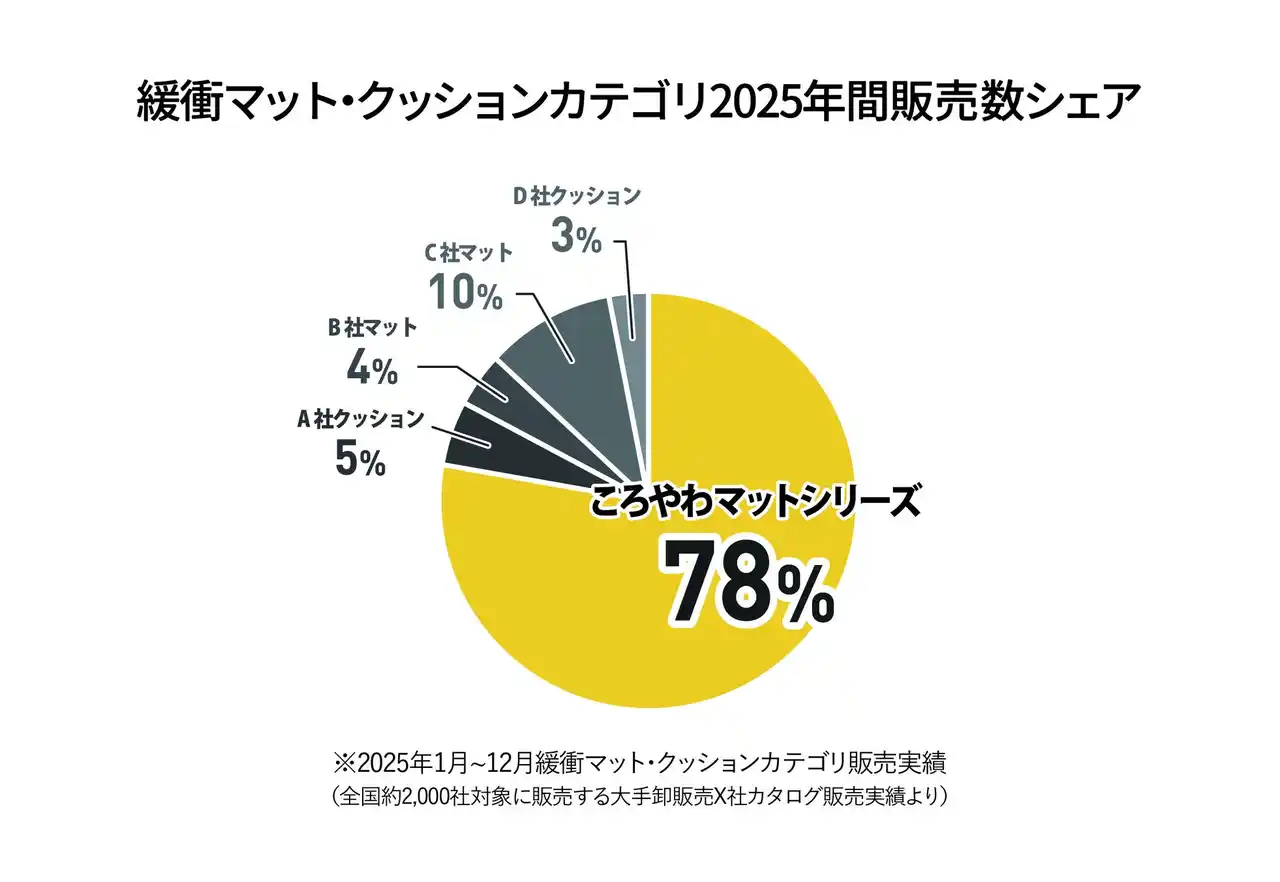 | 株式会社Magic Shields(本社:静岡県浜松市、代表取締役CEO:下村明司)は、転倒時の骨折リスクを低減する衝撃吸収フロア&マット『ころやわ(R)』シリーズにて、法人向け販売枚数実績で緩衝マット・クッションカテゴリにおける2025年間販売数1位を達成いたしました※1。 | |||