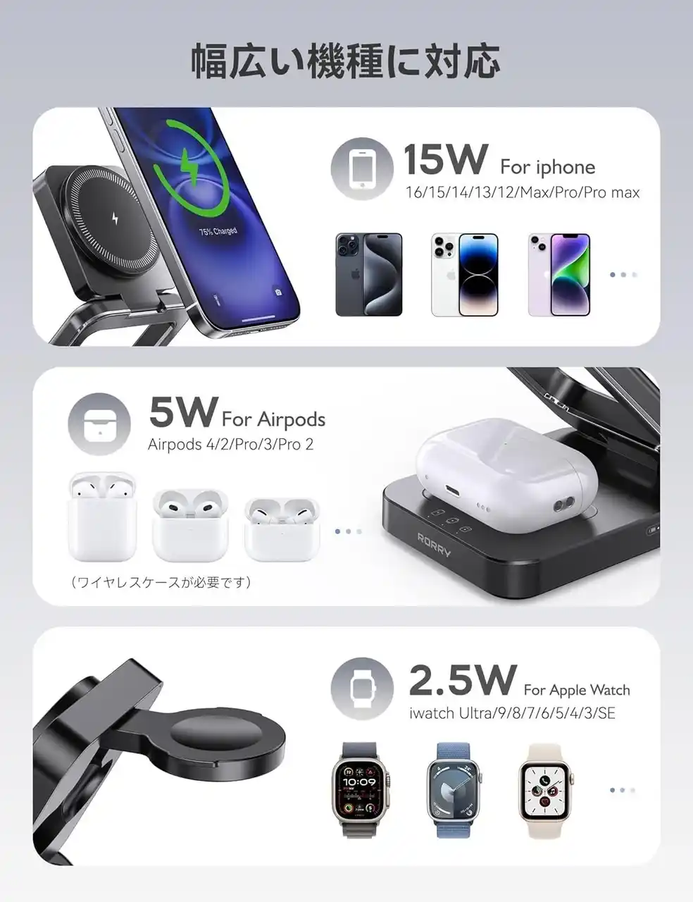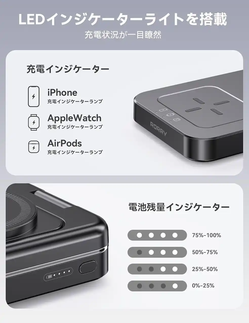 対象製品:RORRY スタンド型3in1ワイヤレス充電モバイルバッテリー D17(5000mAh) 容量:5000mAh 通常価格:7,999円(税込) キャンペーン価格:4,239円(税込) |
