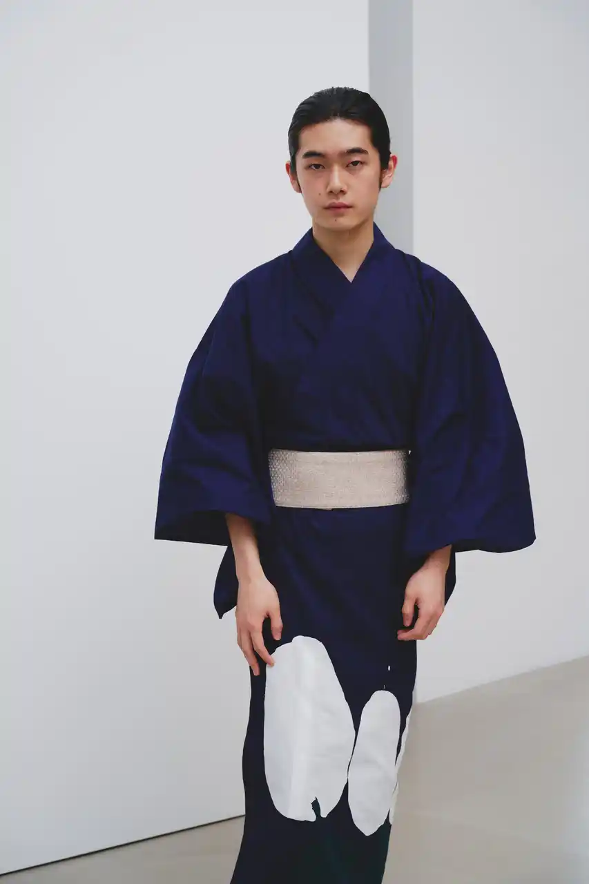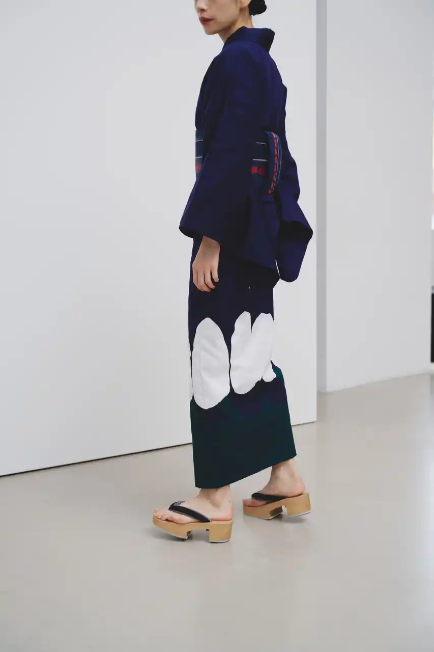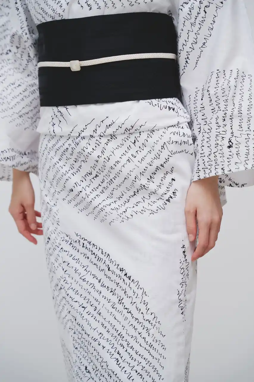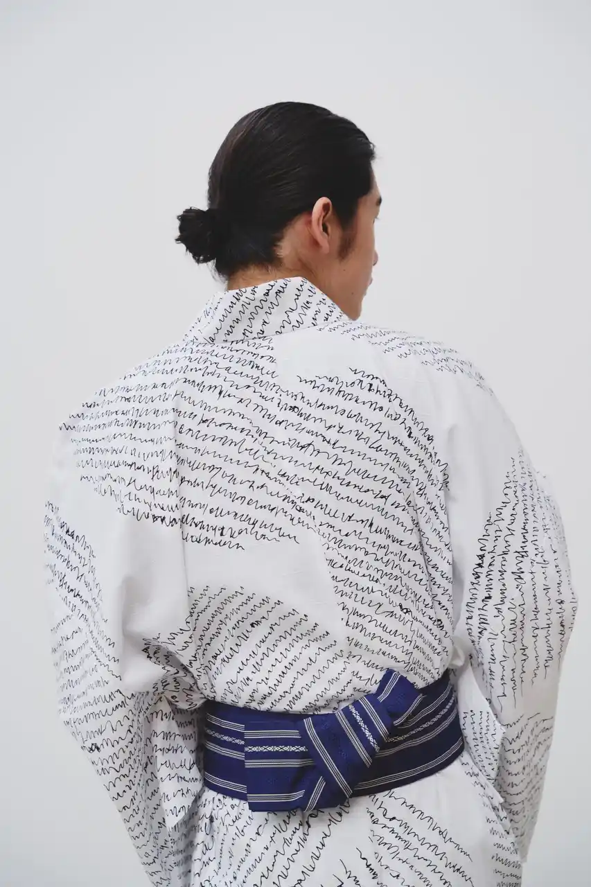 ヘラルボニー契約作家のアートを、身に纏う浴衣として美しく映えるデザインに落とし込みました。染めには、職人が一版ずつ手作業で染める「手捺染(てなっせん)」を採用。気温や湿度、力加減によって微妙に変化する染まり具合を見極めながら、深みのある色や繊細な柄を表現しています。にじみや重なりなど、偶然が生む豊かな表情も手仕事ならではの魅力です。 |