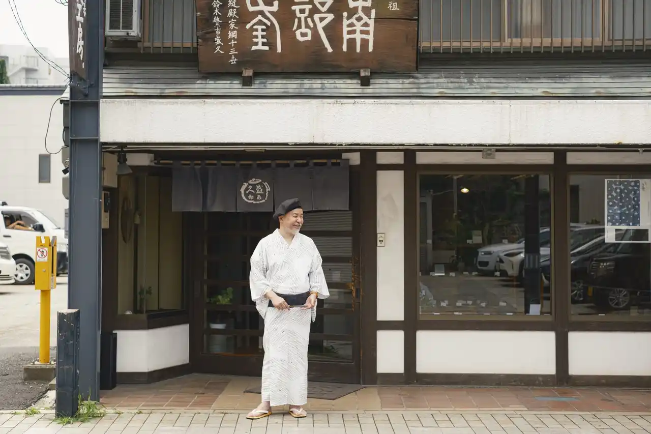 「京屋染物店」は、岩手県一関市にて大正7年から続く染物屋です。地域の祭り半纏や手ぬぐい、郷土芸能の衣装制作を、デザインから染め、縫製、仕上げまで、自社一貫生産で手がけてきました。伝統と技術を大切にしながら、人や土地の絆を紡ぐ道具として、永く愛され使い続けられるものづくりに向き合うだけでなく、近年では自社ブランド「縁日」を立ち上げ、この土地の暮らしに根ざした精神性を、ものづくりを通して発信しています。