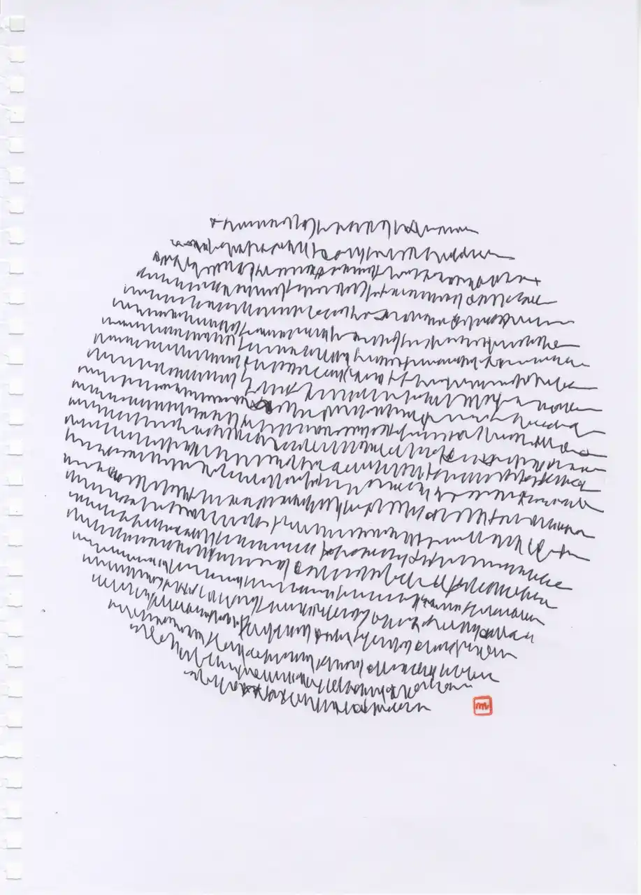 東京都内特別支援学校在学中。お寿司とゲーム(マリオカート)と、お料理すること、絵を描くことが大好き。シール、スタンプ、ドリッピングなど様々な絵作りをするなか、一番気に入っているものは、古代なのか宇宙なのか未来の言語なのか、彼女なりのタイポグラフィをノート一面に書き綴っているものである。 |