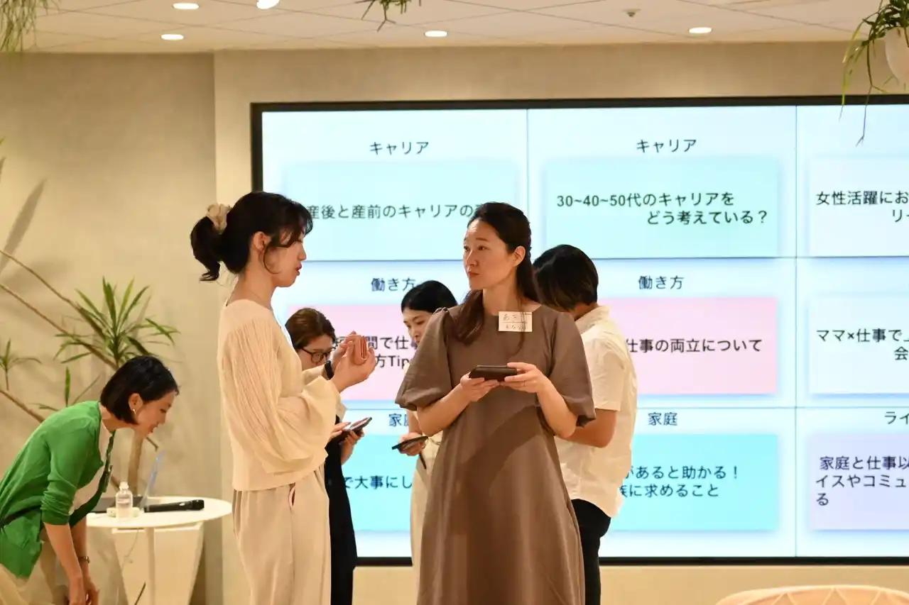 スタートアップは少人数の組織が多く、社内に同じ境遇の人がいないこともあります。でも、社外を見渡せば「同じように子育てをしながら働く人」はたくさんいる。そういった人たちがつながれる場があるだけで、ものすごく心強くなれるんです。 |