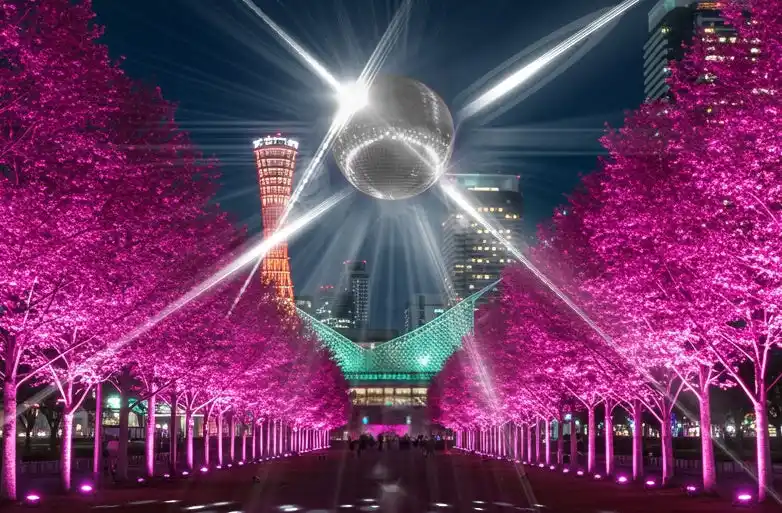 今年は、「静寂の中で打ち上がる花火」と「音楽とシンクロした花火」の二つの演出を展開します。 花火終演後には、神戸の美しい夜景を背景に、メリケンパークの並木道をライトアップするナイトウォーク「ルミナスグロー」も実施。夜の余韻を、静かにお楽しみいただけます。 |