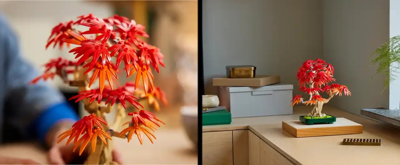 紅葉や針葉樹など色づく自然の美しさを室内で楽しめるのもレゴ(R)ブロックでつくる「ボタニカルコレクション」の魅力です。この秋は、3種の葉で自由にアレンジが楽しめる「レゴ(R)ボタニカル ミニ盆栽」や日本の秋を象徴するもみじの風情を丁寧に再現した「レゴ(R)ボタニカル 盆栽 日本のもみじ」など、和の趣にあふれたラインアップが揃いました。特に、「レゴ(R)ボタニカル 盆栽