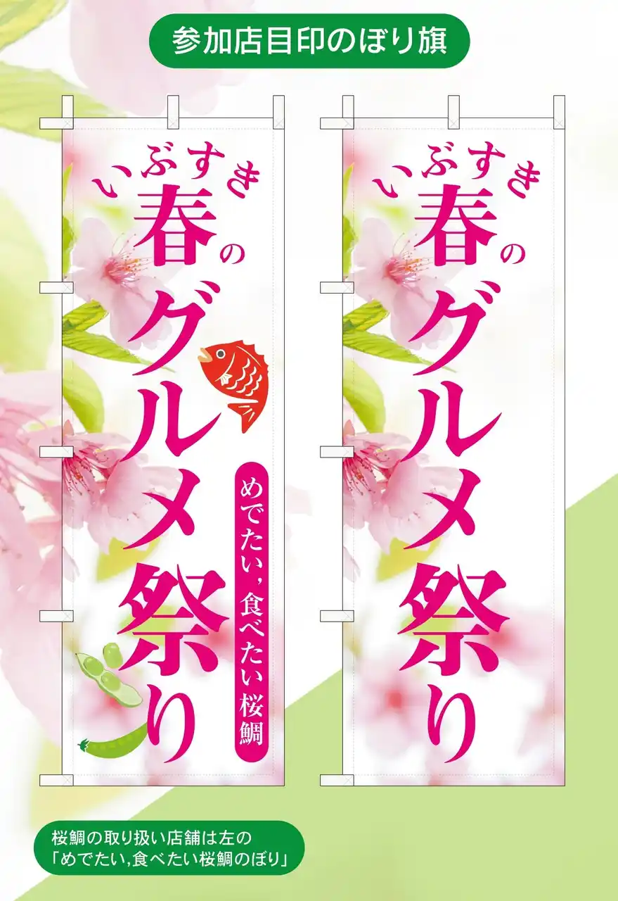 期間中は、のぼりを目印に、市内各参加店において、旬の食材を使用したメニューを提供いたしますので、各参加店において、指宿の旬の味をぜひお楽しみください! |
