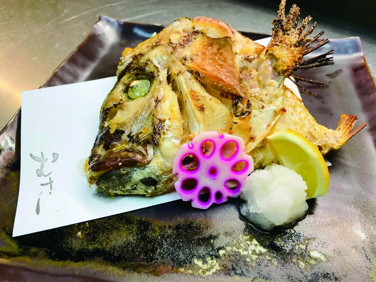 約5,700 年前の火山噴火でできた山川湾にある「山川港」は、中世の頃より栄える天然の良港で、湾口に位置しています。中でも、鰹の水揚げ場として知られており、鰹節の生産が盛んです。鰹節の中で最も高級な「本枯本節」は、指宿産が全国の約8 割のシェアを占め、「和食」の文化を支えています。また、水揚げされた鰹を、最適な焼き具合で仕上げた「鰹のたたき」は絶品です。 |
