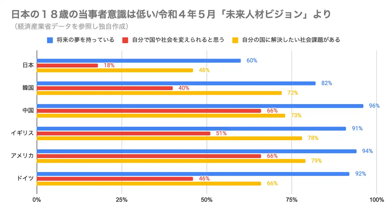経産省データを参照し独自作成した「世界の18歳の当事者意識調査」のグラフ |