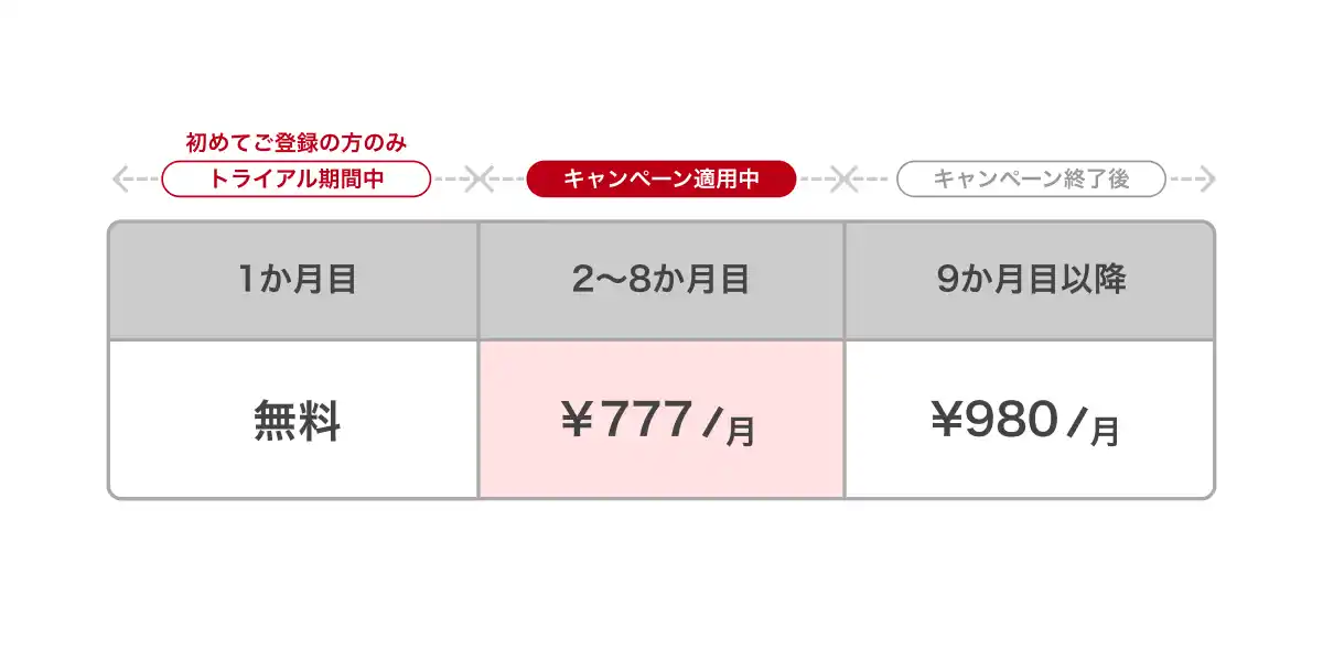 | (初めてご登録いただいた方は初月無料のトライアルが適用されます。) | |||