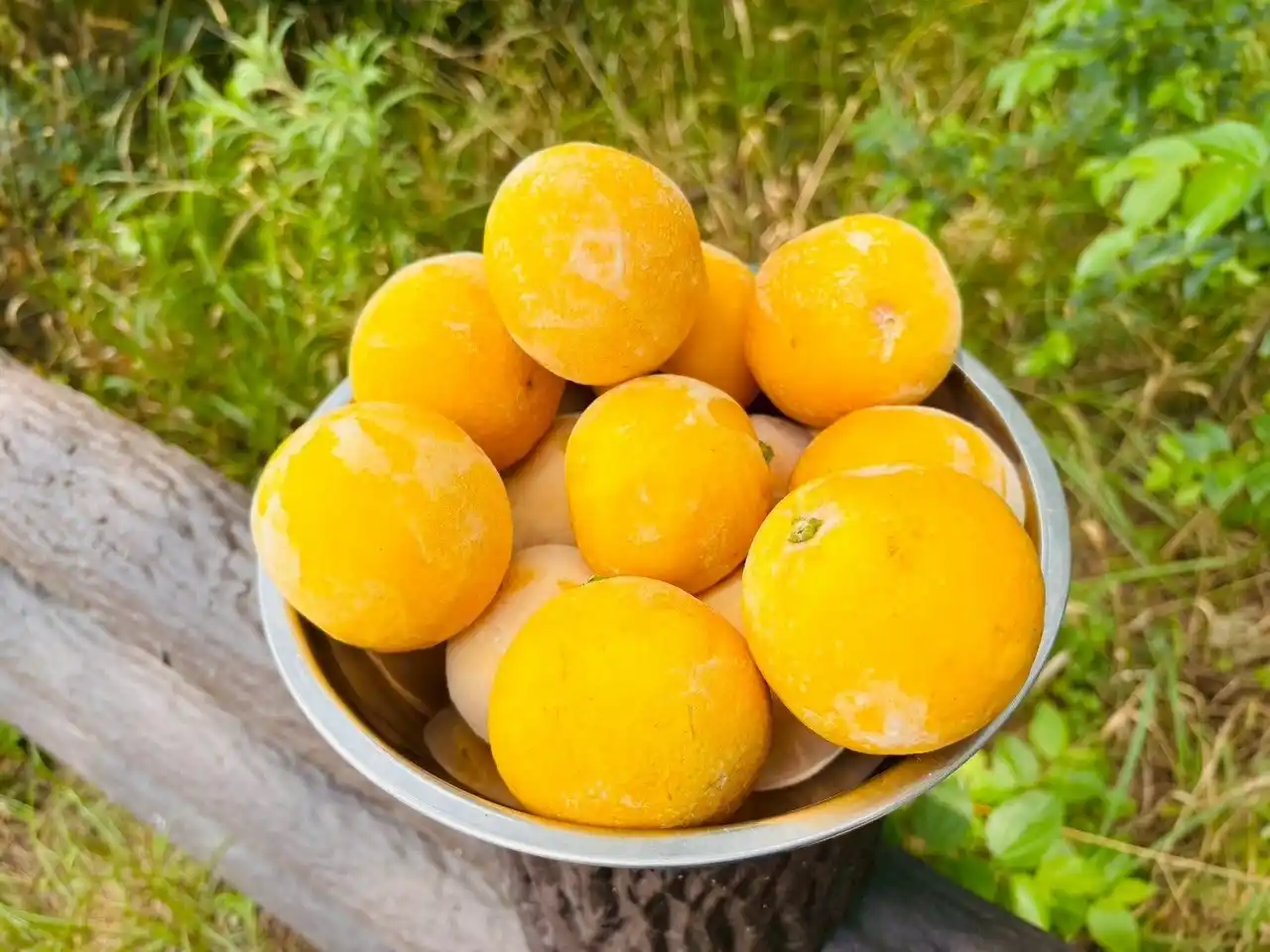 当日プレゼントする凍らせた果物、地元産「ニューサマーオレンジ」 |