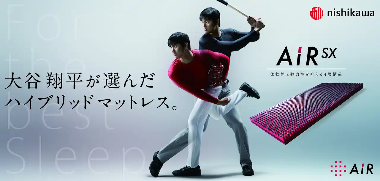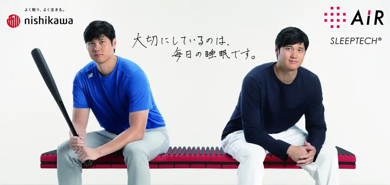 西川株式会社(本社:東京都中央区、社長:竹内雅彦、以下「nishikawa」)は、本年度も大谷選手と睡眠コンディショニングサポートを契約いたしました。高校卒業後、北海道日本ハムファイターズ入団時より[エアー]シリーズのマットレスを愛用いただき、2017年よりコンディショニングサポート契約を締結しました。毎年大谷選手を睡眠の面からサポートし続け、今年で10年目を迎えます。 |