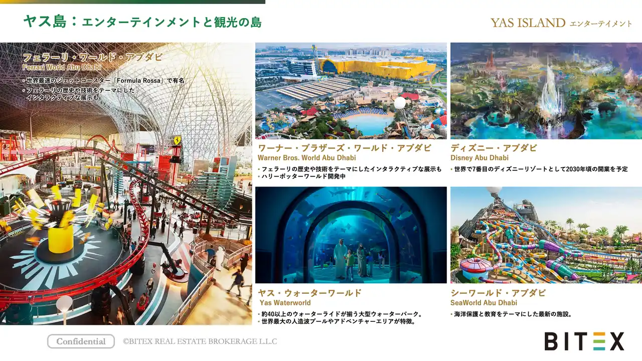アブダビ には、島ごとに異なるコンセプトを持つ複数のエリアが存在します。例えば、エンターテインメントの ヤス島、文化・芸術の サディヤット島、金融やAI企業が集積する アル・リーム島 などが代表的です。 中でも近年特に注目を集めているのが ヤス島 です。ディズニーランド、ハリーポッターワールド、Sphereの発表が相次ぎ、アブダビのみならず世界的にも話題となりました。これらを背景に、同エリアでは観光産業のさらなる強化が見込まれています。 |