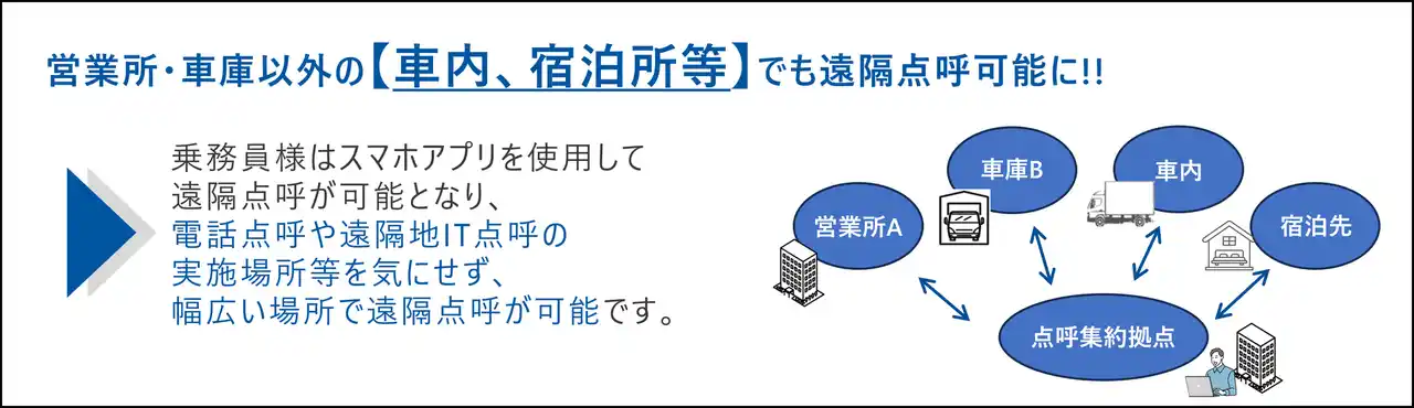 Business Support System(以下BSS)に遠隔地遠隔点呼(スマホアプリでの遠隔点呼)機能が |
