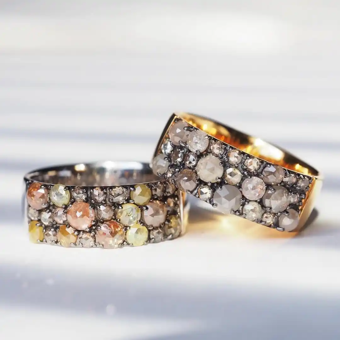 希少な素材ゆえ、これまで限られた機会でのみご紹介してきた8ファセットカットのダイヤモンド。その魅力を”パヴェリング”にお仕立ていたしました。8ファセットダイヤモンドならではの白い輝きと、緩やかに返るアームの造形が調和し、日常に取り入れやすい量感と華やかさを備えた一品です。控えめでありながら確かな存在感を持ち、装いとともに時間を重ねていきます。 |