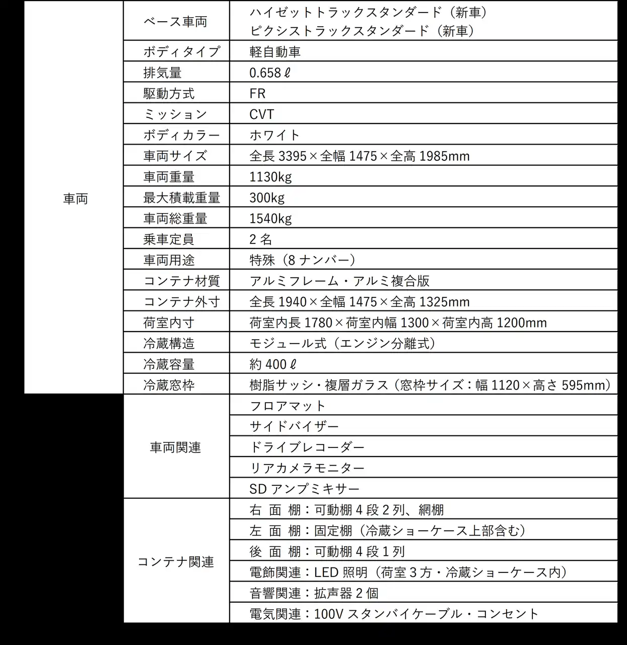 各機能が分離構造の本製品は、故障時の原因特定が容易であり、かつ冷蔵機や電源を交換可能な仕組にすることで復旧までに要する時間を短縮。移動販売事業の迅速な再開に寄与します。 |