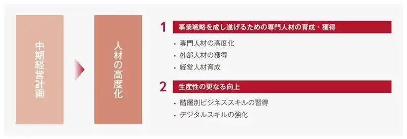 キヤノンMJグループは、人材を人的資本と捉え、積極的な投資を実施しています。2025年ビジョンとして掲げる「社会・お客さまの課題を ICT と人の力で解決するプロフェッショナルな企業グループ」実現に向け、社会やお客さまの抱えるさまざまな課題を解決する存在として提供価値を高めるために、人材の高度化、特にデジタル人材育成に注力しています。 |
