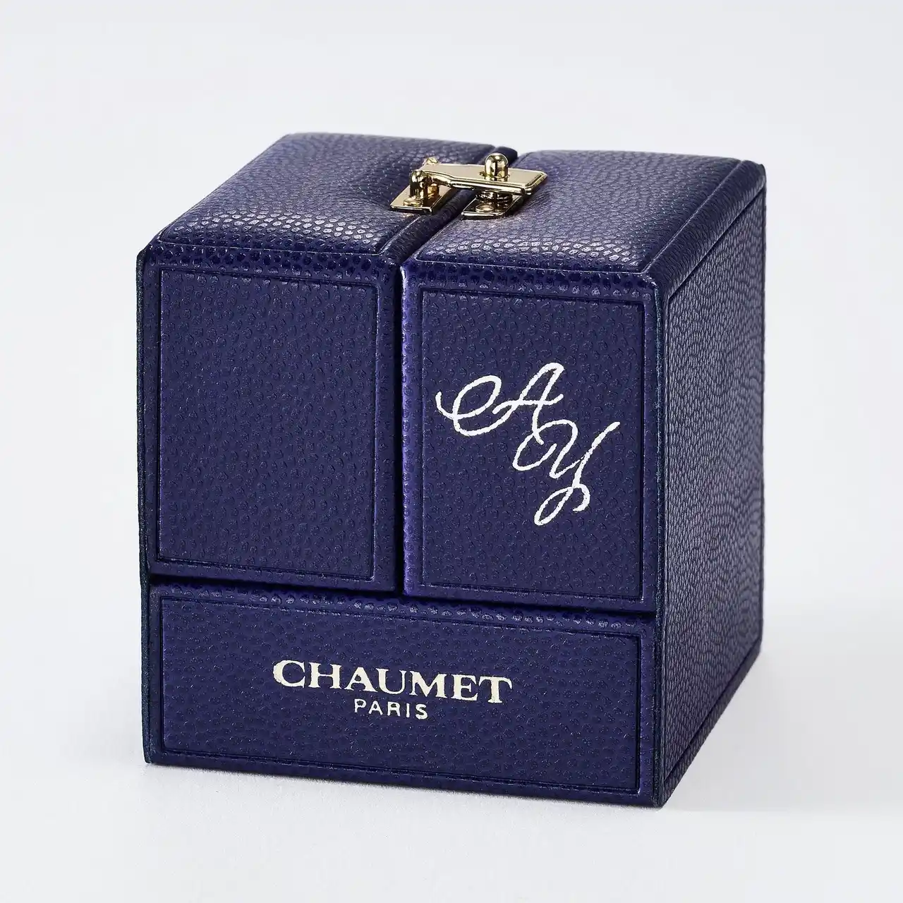 ジュエリーボックスにお好きなカリグラフィーを施す、パーソナライズサービス行っております*1。カリグラフィーはシルバーとゴールドの2色からお選びいただき、イニシャルや記念日などのお日にちを刻めるほか、パリ発のメゾンらしいエッフェル塔などのモチーフから、お好みのデザインをお選びいただけます。 |