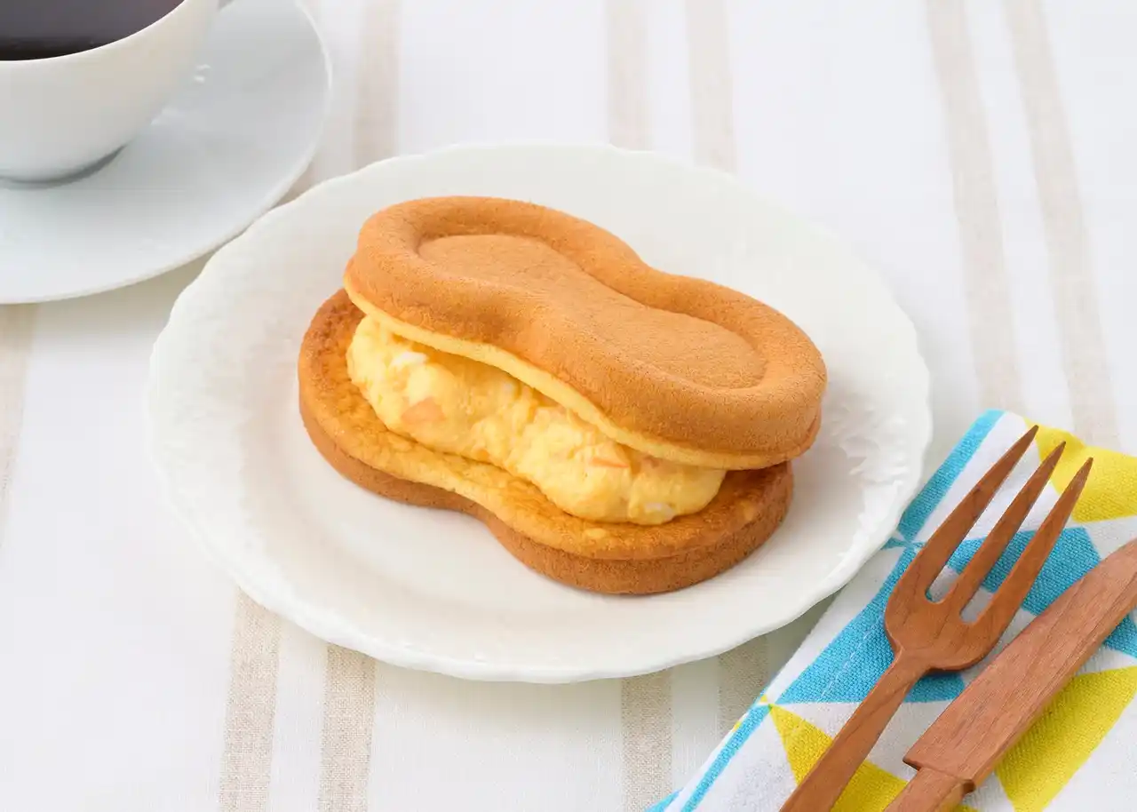 特長:ワッフルの甘さとたまごサラダフィリングのほどよい塩味がやさしい味わいの、お食事系ワッフルサンド。スフレのようなふわふわ食感のワッフル皮で、卵の食感が楽しめるたまごサラダフィリングをサンドしました。 |