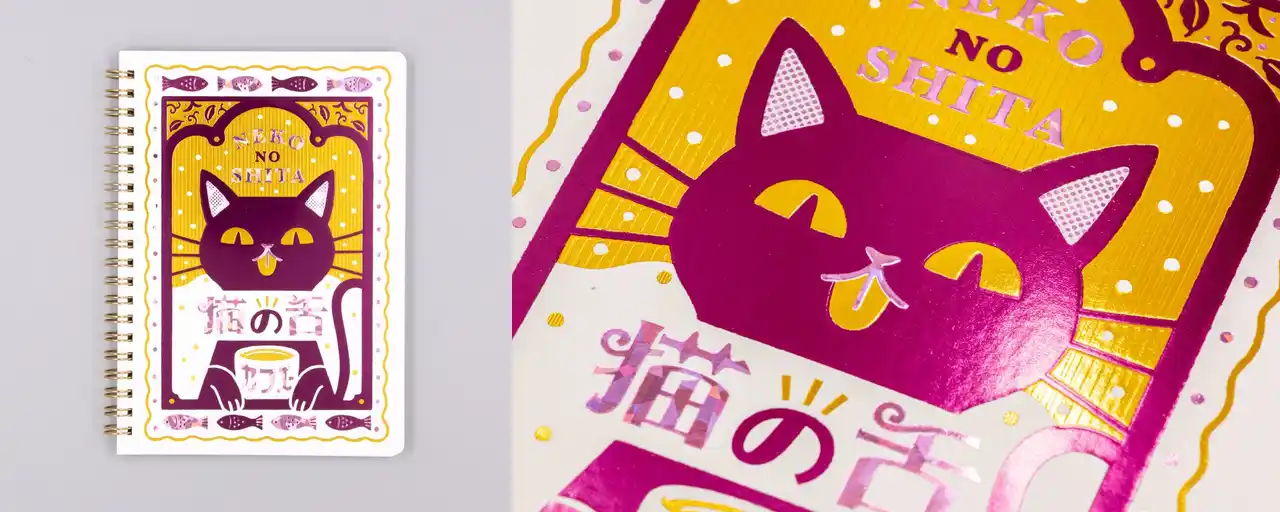 | 3色の箔とテクスチャ加工によってレトロ可愛いイラストがきらきらと輝きます。 | ||||||||||||||