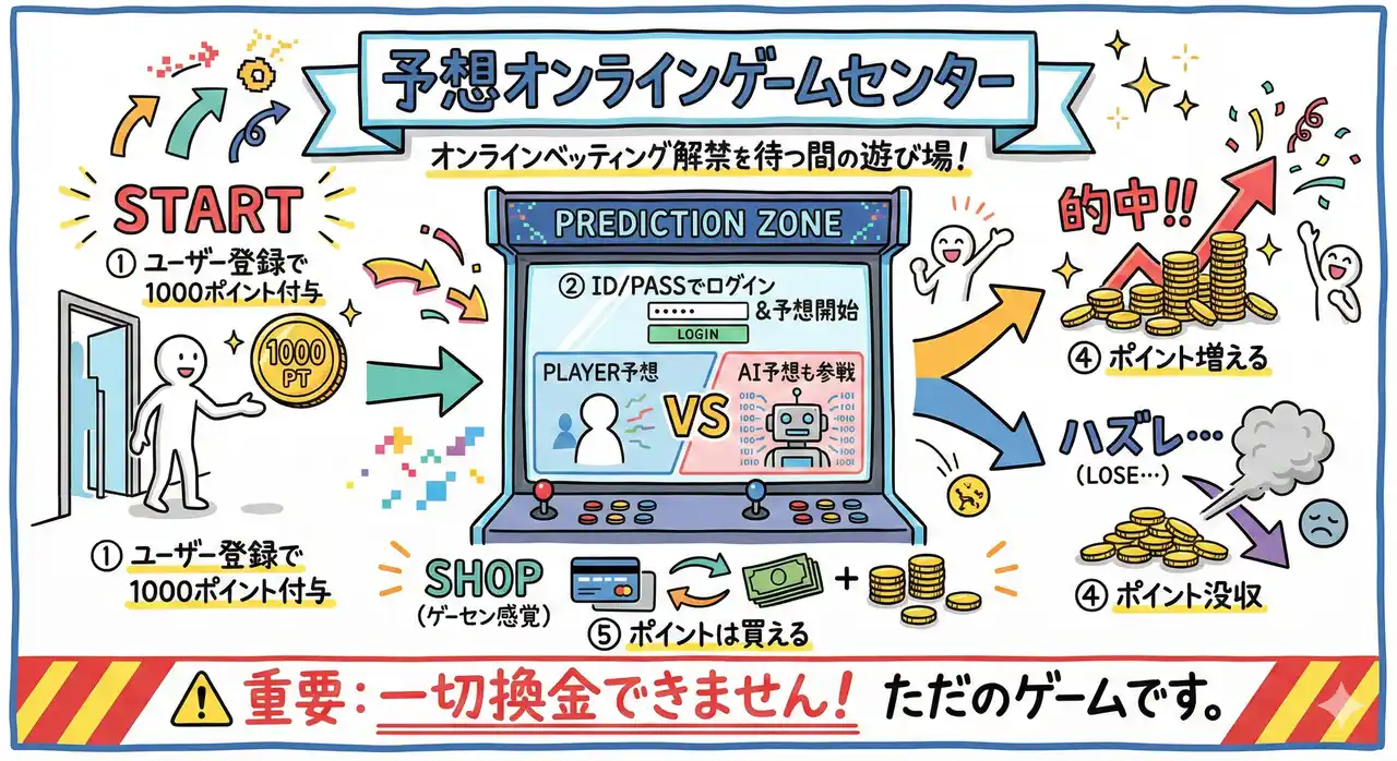 | また、「国民の関心事+AI予想」にはニーズがあることもわかりましたので、換金を一切できないポイント制のオンラインゲームセンターのような形で、Wカップ予想、野球予想、サッカー予想、選挙予想など、ありとあらゆるユーザー参加型の、合法AI予想ベッティングサービスの可能性なども模索して参ります。 | |||