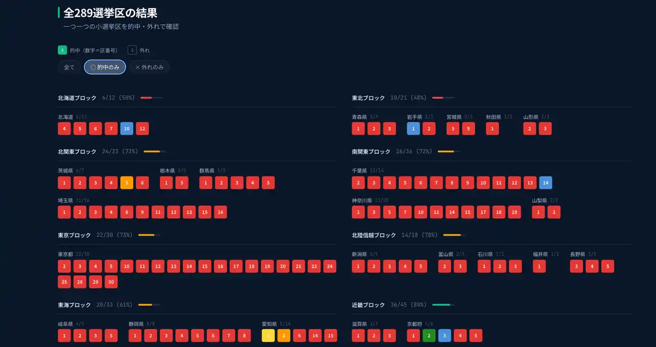 | ホリエモンAI学校株式会社(本社:東京都新宿区、代表取締役CEO:荒木 賢二郎、以下「ホリエモンAI学校」)は、2026年に実施された衆議院議員総選挙に向けて公開したAI選挙予想サービス『ホリエモンAI選挙』の予想的中結果を発表いたしました。 | |||