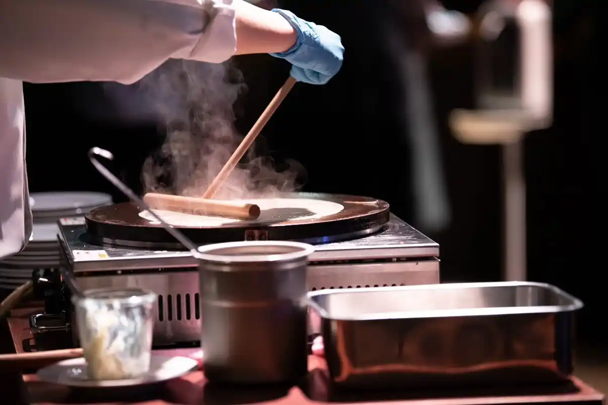 その場で一枚ずつ丁寧に焼き上げ、出来たてを提供。 お好みのトッピングを選んで、自分だけのオリジナルクレープをお楽しみいただけます。 |