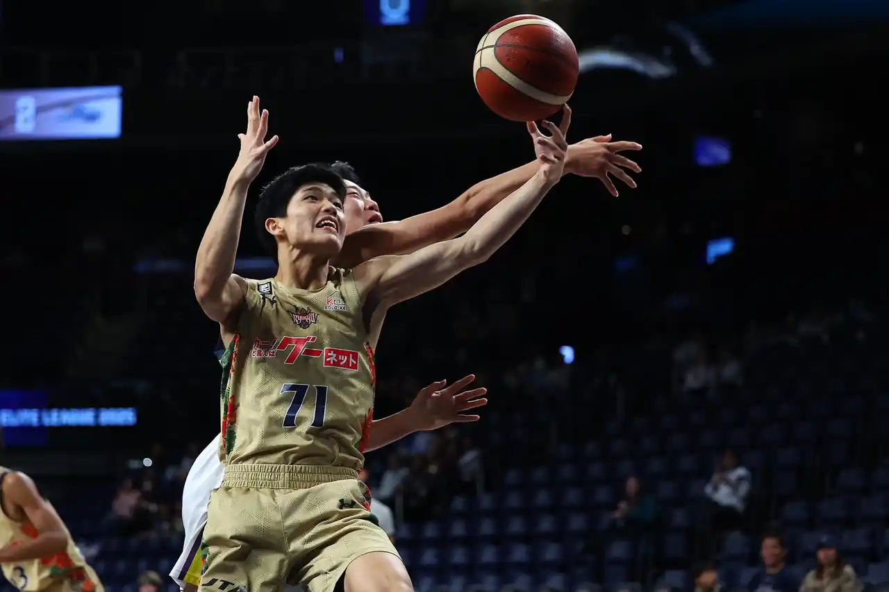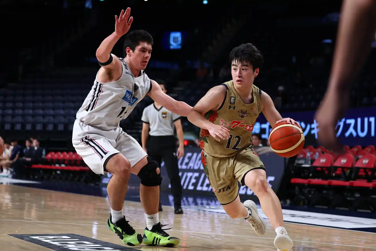 前回の大敗から気持ちを切り替えて臨んだ沖縄サントリーアリーナでの第8戦の相手は横浜ビー・コルセアーズU18です。驚異的な高さを誇る相手に対し、#12 桶谷都人選手が3Pシュートを高確率で沈め26得点とチームを牽引し、77-66で勝利しました。 |