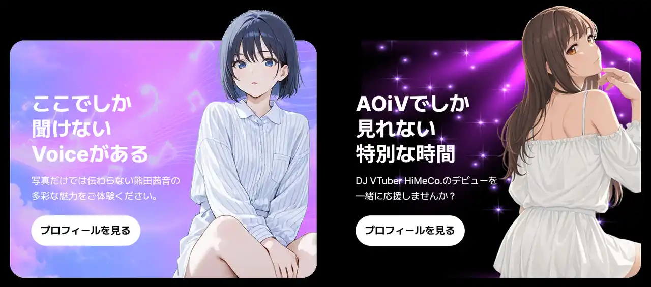 オーディションで発掘された才能が、実際の活動へとつながる場を提供することで、AOi Vは次世代クリエイターの継続的な活躍を支援してまいります。 |