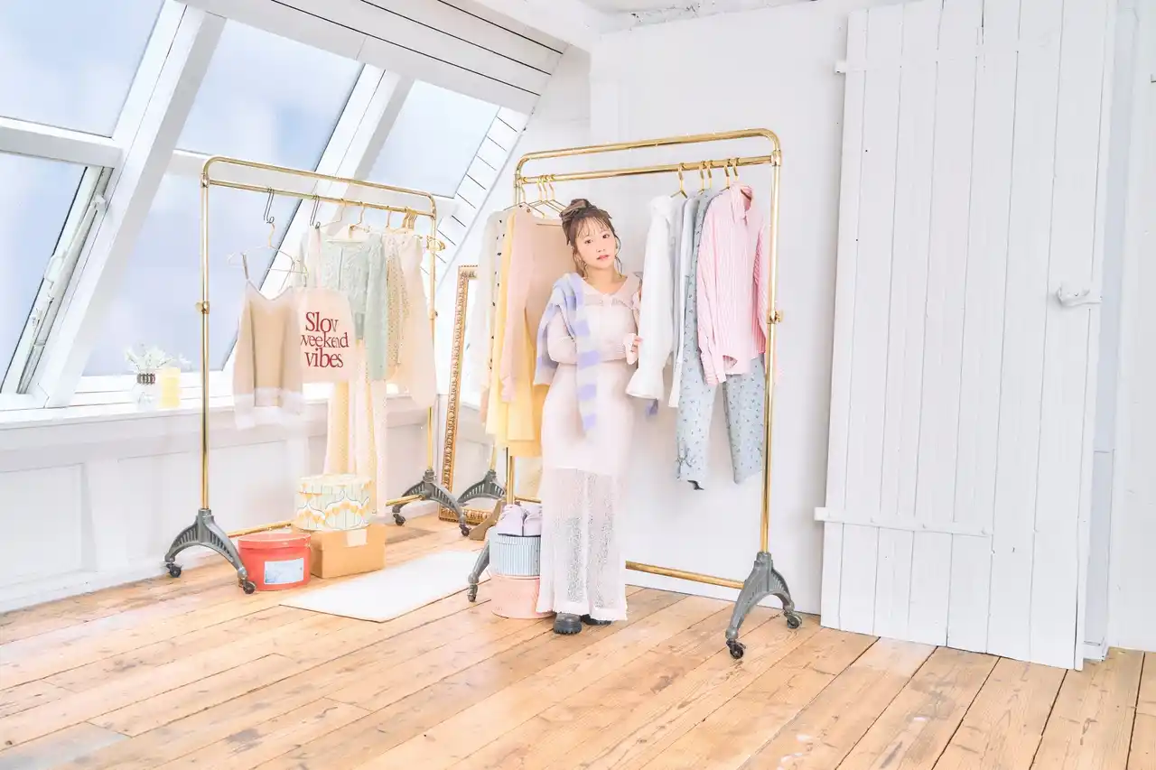 前回の撮影の時もとっても可愛いお洋服を着て、今回も可愛いお洋服とおしゃれなセットに囲まれて撮影ができたのがとっても楽しかったですし、パルクロさんと共に新しい季節を迎えられるのがとても嬉しいなと思います。 |