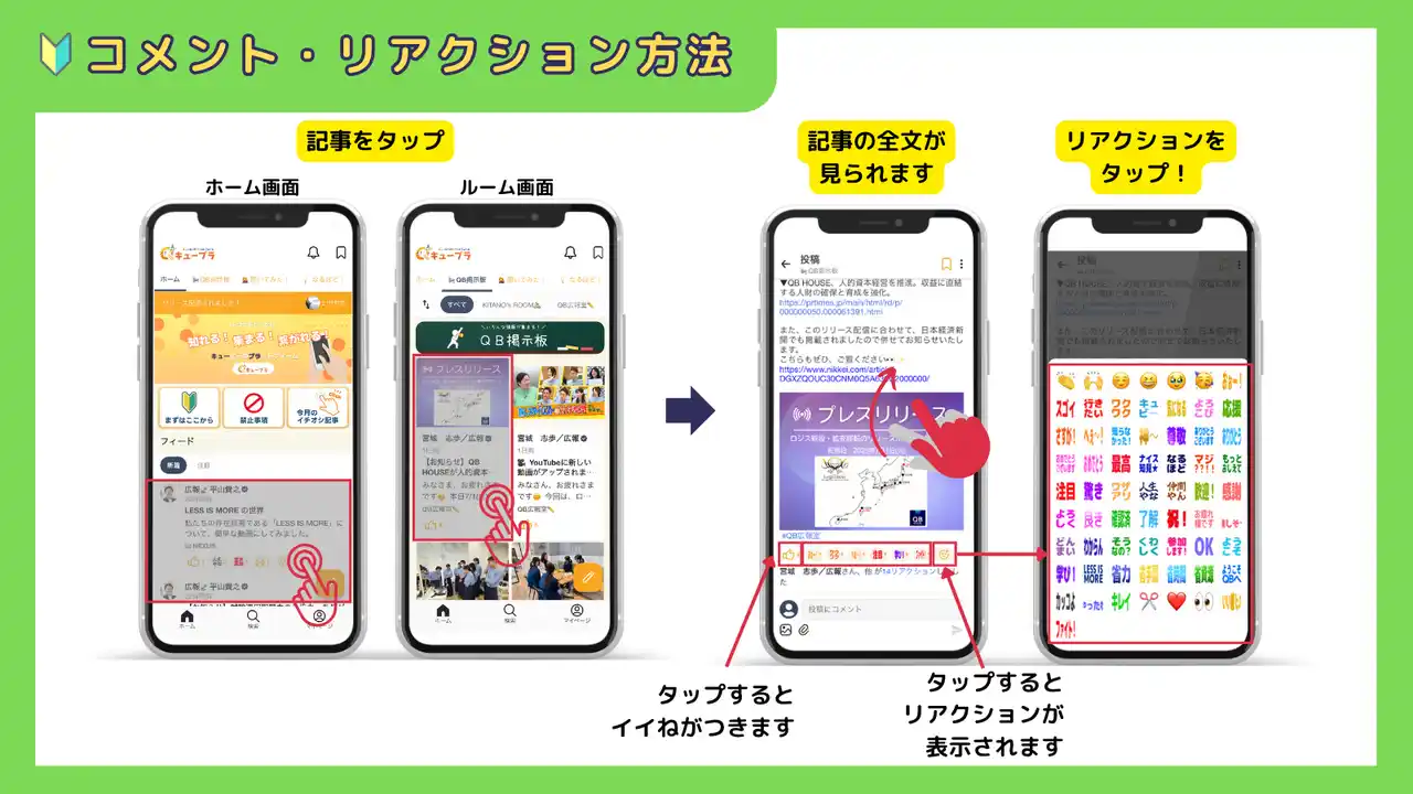 ・さらも記事ごとに各種リアクションスタンプが押せ、コメントを残すことが可能 |