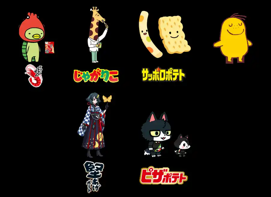 本コラボレーションを記念し、「じゃがりこ」「かっぱえびせん」「Jagabee」「サッポロポテト」のキャラクターに加えて、「堅あげポテト」と「ピザポテト」のキャラクターを、ゲーム業界のレジェンドイラストレーターである西村キヌ氏と、独特の世界観でカリスマ的な人気を誇る326(ミツル)氏がそれぞれ特別に描き下ろします。このコラボレーションでしか見られない、唯一無二のキャラクターがゲーム内に登場します。 |