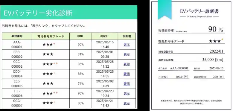 | オリックス自動車株式会社(本社:東京都港区、代表取締役社長:内藤 進、以下、オリックス自動車)、EVolity株式会社(本社:東京都中央区、代表取締役社長:天池 正治、以下、EVolity)、およびパナソニック ホールディングス株式会社(本社:大阪府門真市、代表取締役 社長執行役員 グループCEO:楠見 雄規、以下、パナソニックHD)の3社は、リースやレンタカーでの利用を終えた電気自動車(EV)を対象に、EVバッテリーの劣化診断システムを活用した共同実証実験を2025年7月より開始しますのでお知らせします。 | ||||||||||||