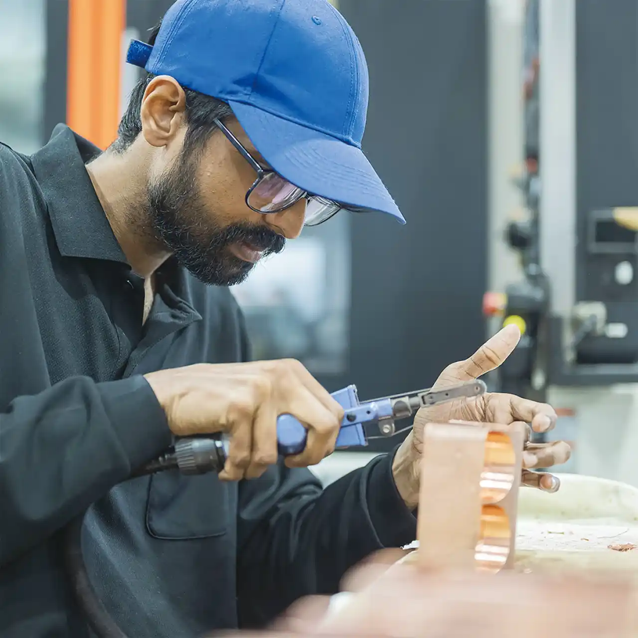 製品の精密な再現に欠かせない切削加工製品の手仕上げ工程。 |
