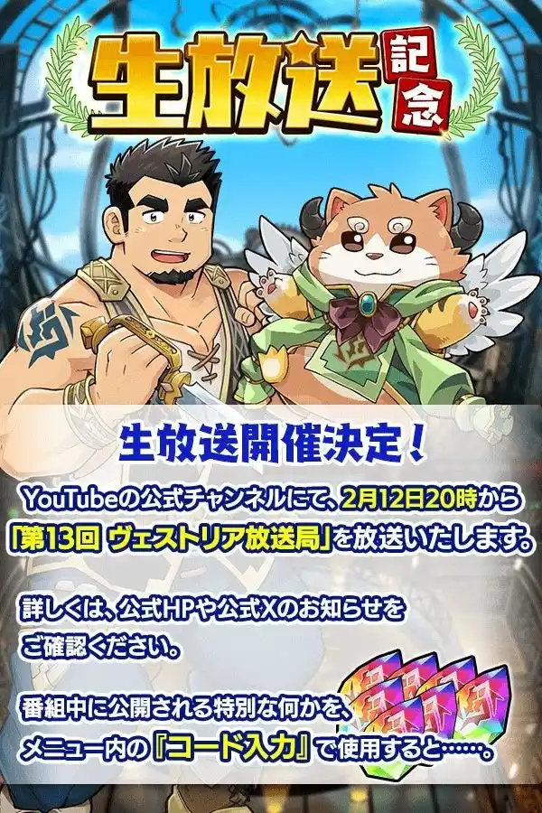 「第13回 ヴェストリア放送局」が2月12日20:00から放送開始! |
