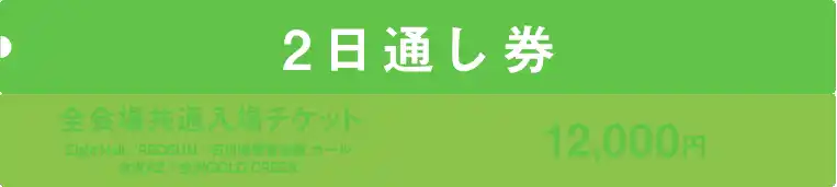 | 全会場共通入場チケット(Eight Hall / REDSUN / 石川県教育会館 ホール / 金沢AZ / 金沢GOLD CREEK)各1日券とお得な2日通し券の販売となります。 | ||||||||||||||