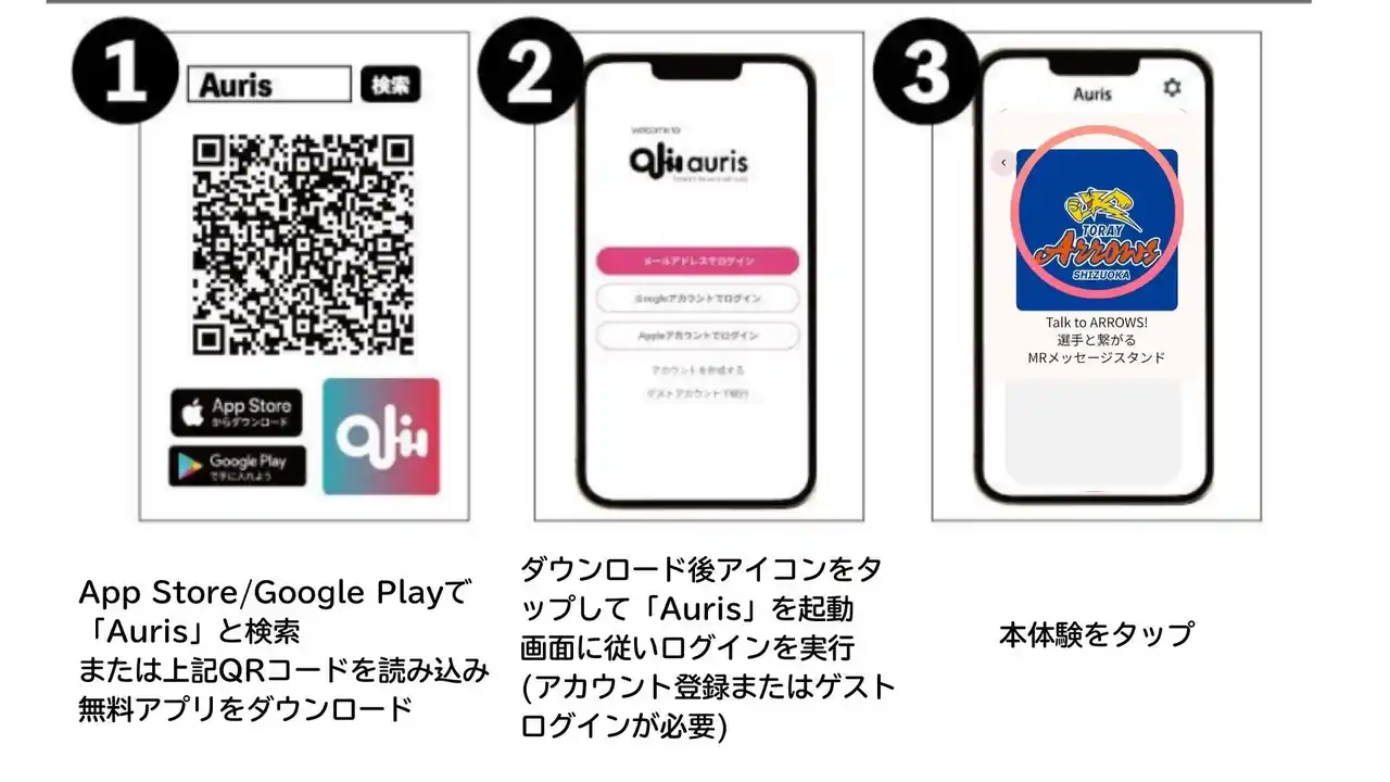 2月14日(土)発売の「東レアローズ静岡」選手の「SWEETビジュアルアクリルスタンド」をご購入いただき、「Auris」アプリから選手の限定アクリルスタンドを読み取ると、アプリを通じて選手の声を聴くことができます。 |