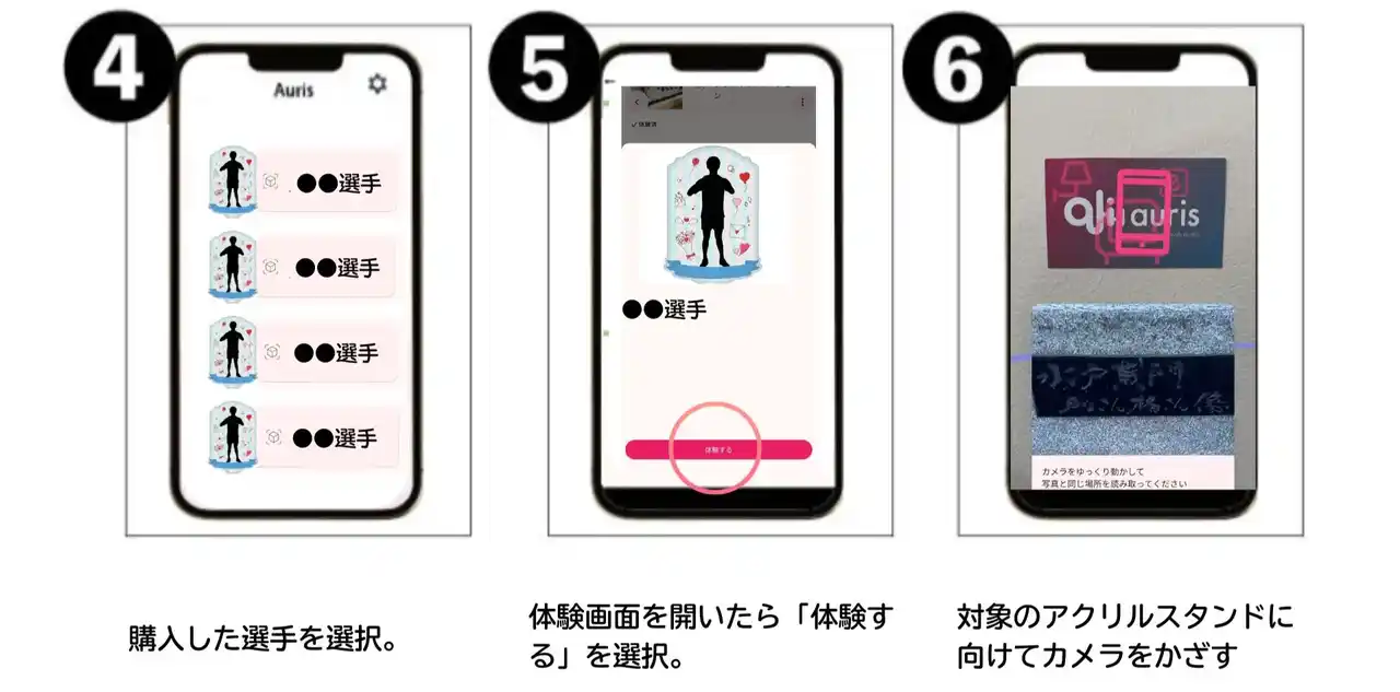 ご自宅で推しのアクリルスタンドと時間を共にしたり、一緒にお出かけすることが「推し活」のスタンダードとなった昨今、いつでも・どこでも「Auris」アプリを通じて推し選手と会話することで、従来のアクリルスタンドで楽しむ「推し活」以上に、推し選手を身近に感じることができます。 |