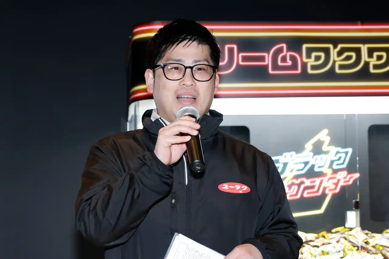 有楽製菓株式会社(本社:東京都小平市、代表取締役社長:河合辰信)は、ブラックサンダーの2026年のバレンタイン企画として「楽しくやろうぜぇ。」をテーマに、バレンタイン特別イベント「ブラックサンダー ドリームワクワクランド」を2026年2月13日(金)~15日(日)の3日間、下北沢ADRIFTにて開催いたします。 イベントの開催に先駆け、2月12日(木)にメディア発表会・先行内覧会を実施いたしました。内覧会では主催挨拶として有楽製菓株式会社 代表取締役社長 河合辰信より、今年のバレンタイン企画のコンセプトと施策についてご説明いたしました。続いて、マーケティング部 杉田晶洋より今年のバレンタイン特別商品についてご紹介をいたしました。その後、ご来場いただいたメディアの皆様に4種類のゲームで大量獲得を目指す「ブラックサンダー ドリームワクワクランド」の体験会を実施。昨年よりもパワーアップした4種類のゲームをお楽しみいただきました。 |