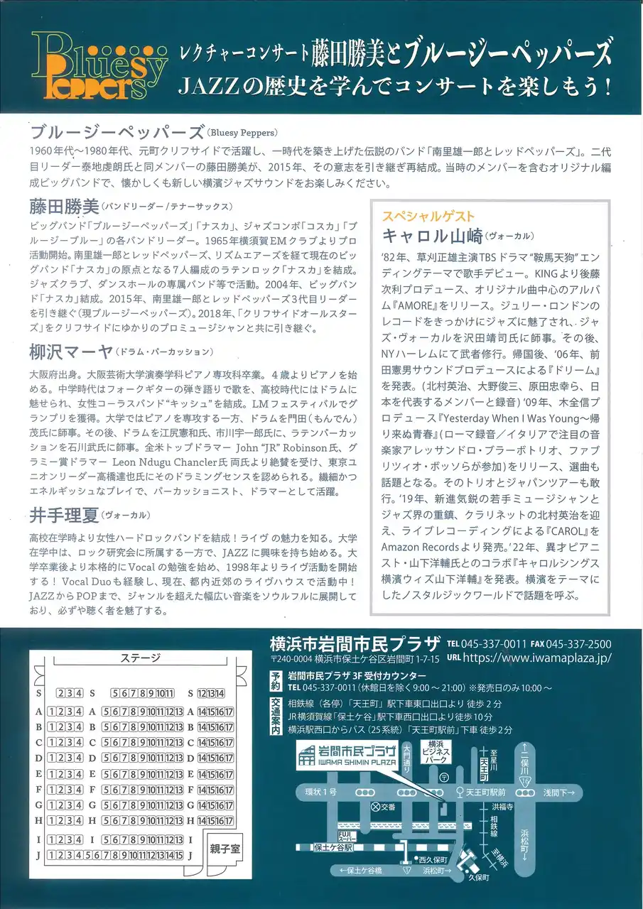 チケット取り扱い 横浜市岩間市民プラザ Tel:045-337-0011(9:00~21:00 休館日=2026/2/16) |
