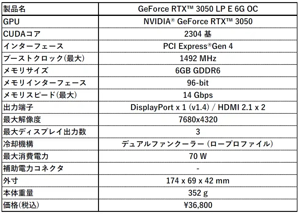 ■ GeForce RTX(TM) 3050 LP E 6G OC |