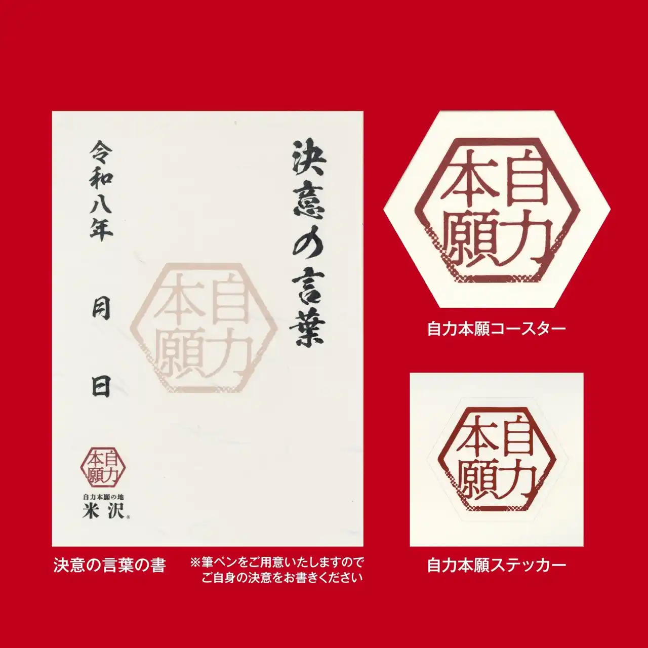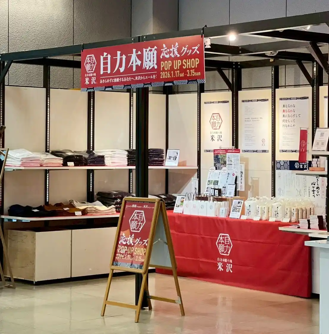 期間中、上杉城史苑館内では「自力本願 応援グッズ POP UP SHOP」を同時開催します。 |