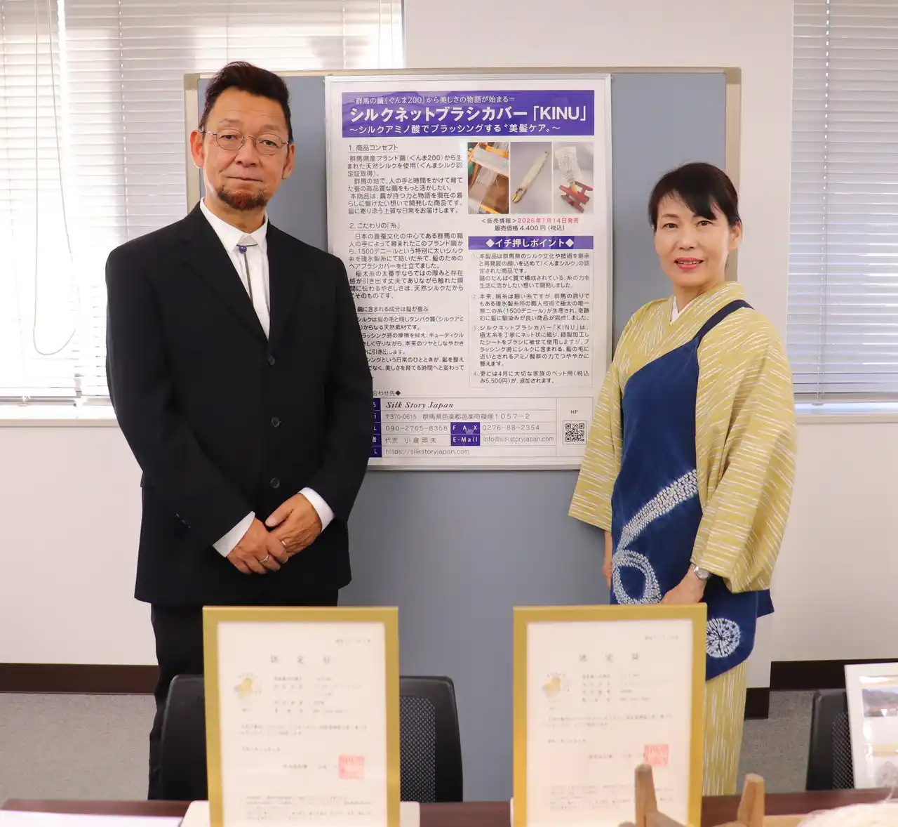 当社は、シルク製品の企画販売を生業とする。新商品として髪を梳かす際に使用する「ブラシカバー」を開発した。群馬県産の1500デニールの太糸を使用した本製品は、髪の毛と同じタンパク質により、摩擦を減らしキューティクルを守るという特徴があり、本来のツヤとしなやかさを引き出す。ペット用も発売を予定している。 |