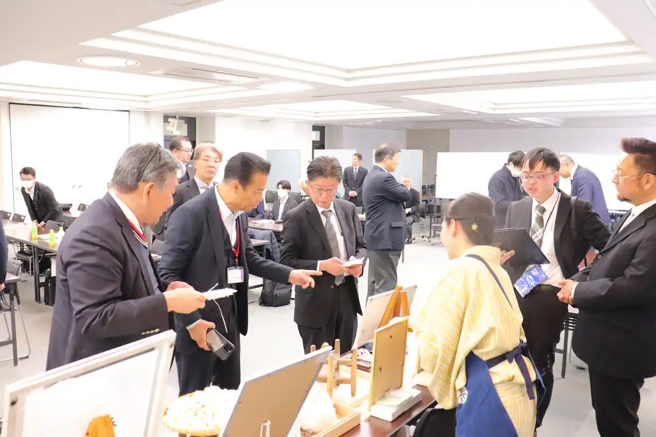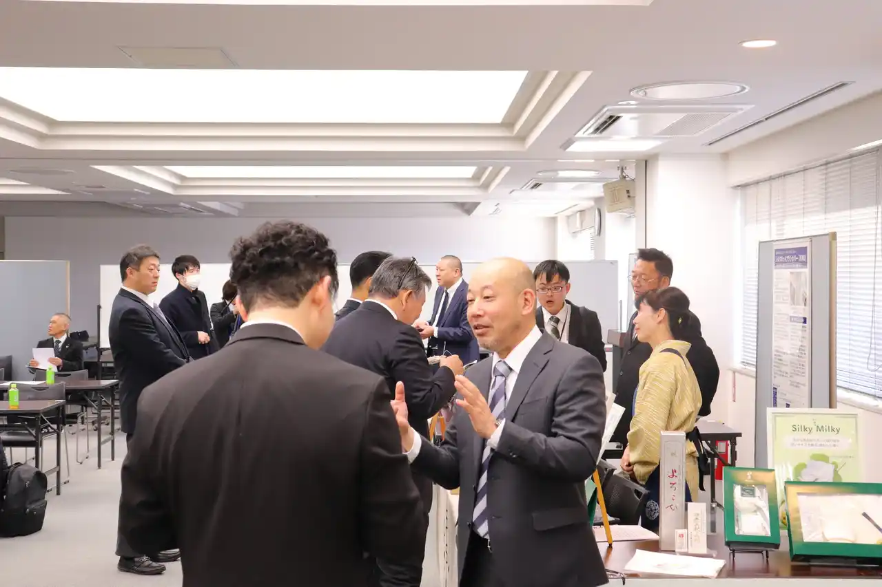 参加企業とマスコミ記者等との懇談・名刺交換を行う |