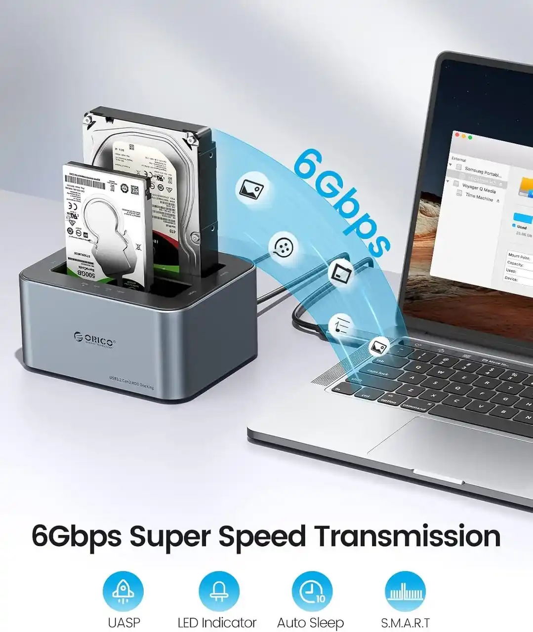 | ORICO HDDスタンド 6626C3-C|USB-C対応|デュアルベイ・オフラインクローン機能付き | |||