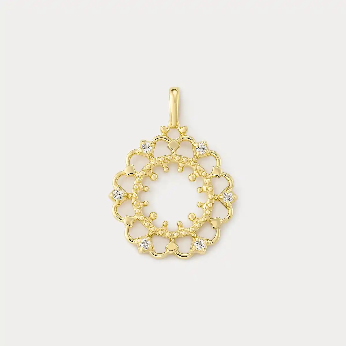 ハートモチーフには、「愛・幸福・絆」の意味を込め、ミルグレインの装飾によって、アンティークジュエリーのような温もりを表現。身に着ける人の想いや願いに寄り添い、日常の中でそっと心を支えるチャームです。 |