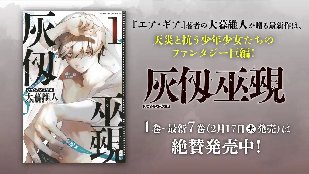 | 「天上天下」「エア・ギア」の大暮維人が描く、最新作「灰仭巫覡(カイジンフゲキ)」第7巻が2月17日発売予定!これを記念しまして、講談社が運営するYouTubeチャンネル「フル☆アニメTV」でTVアニメ「エア・ギア」全25話を期間限定で一挙無料公開いたします。本日2月13日から5月7日までの期間限定配信となりますので、最新作「灰仭巫覡」と一緒にぜひお楽しみください! | |||