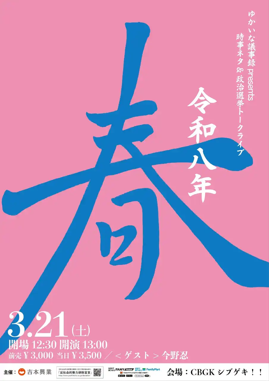 【ゆかいな議事録 presents 時事ネタ&政治選挙トークライブ「令和八年」~春~】 |