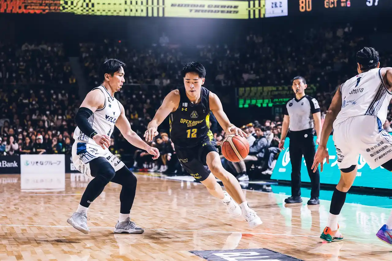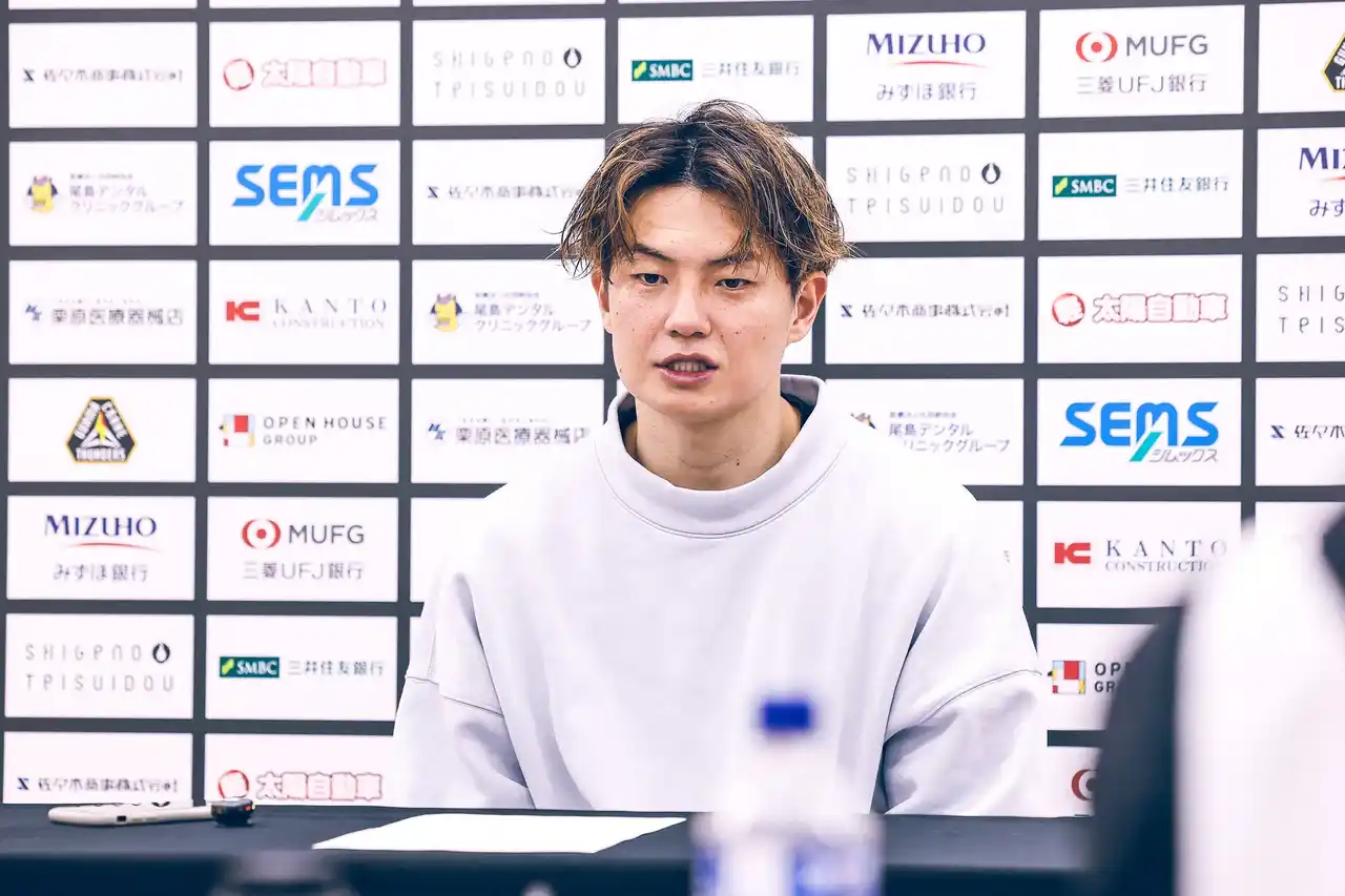 今、首位のチームとやれるということで、個人的にもすごくワクワクしていましたし、チームとしてどこまで戦えるかチャレンジャーの気持ちで挑みました。純粋に強かったなという印象と、もう少しチームとしてやれることがあったのではないかという悔しさもあり、そこを修正して明日もう一度チャレンジしたいです。 (「もう少しやれることがあった」というのは具体的にどのような点でしょうか) やはりターンオーバーが多かったのが一番だと思います。 そこで良い形でシュートで終わることができていれば、相手の速攻にもつながりませんでした。あとは1Q、セカンドチャンスで相手のポイントを抑えようと意識していましたが、アンラッキーなところや簡単なセカンドチャンスを与えてしまい、そこからランを作られた点です。 (今日は中村選手が不在の中で、辻選手もハンドラーを務めるなど、いつもと違う役割もありましたがどのように感じましたか) 馬場選手のディフェンスが強力なので、それ以外のところでという意図もありました。 これまではどちらかというとシューターでしたが、今日はセットプレーをコールしたり、良い場面もあったと思います。相手がアジャストしてきても、明日また良い形でオフェンスを組めたらなと思います。 (長崎のイ・ヒョンジュン選手とスタンリー・ジョンソン選手へのディフェンスについて) スタンリー・ジョンソン選手はフィジカルも強くて速さもあり、1対1で止めるのが非常に難しい選手だと感じました。 イ・ヒョンジュン選手はサイズがあってシュート力があることはスタッツから分かっていましたが、後半に立て続けに決められたのは反省点です。個人的にですが、Bリーグに本当にすごい選手が来たなという印象です。 (イ・ヒョンジュン選手とマッチアップして、同じシューターとして具体的に何が「すごい」と感じましたか?) 個人的にはシューターとして負けたくないという思いでマッチアップを楽しんでいました。彼はサイズが大きいのに、韓国の選手特有の「スルスルっと動いて打つ」独特の動きがあります。 ほとんどジャンプしないシュートなので打つタイミングを掴むのが難しく、少しズレを作られるとチェックも届きません。 金丸(晃輔)さんのような感覚に近いなと思いました。スコアリング能力は金丸さんが上かもしれませんが、3ポイントのシュート力は本当に引けを取らない、すごい選手が現れたなと感じます。 (明日の試合について) 僕らは常にチャレンジャーなので、今日できなかったところを反省し、修正して挑みたいと思いますし、なんとか食らいついて勝つチャンスっていうのを見出して行きたいと思います。 |