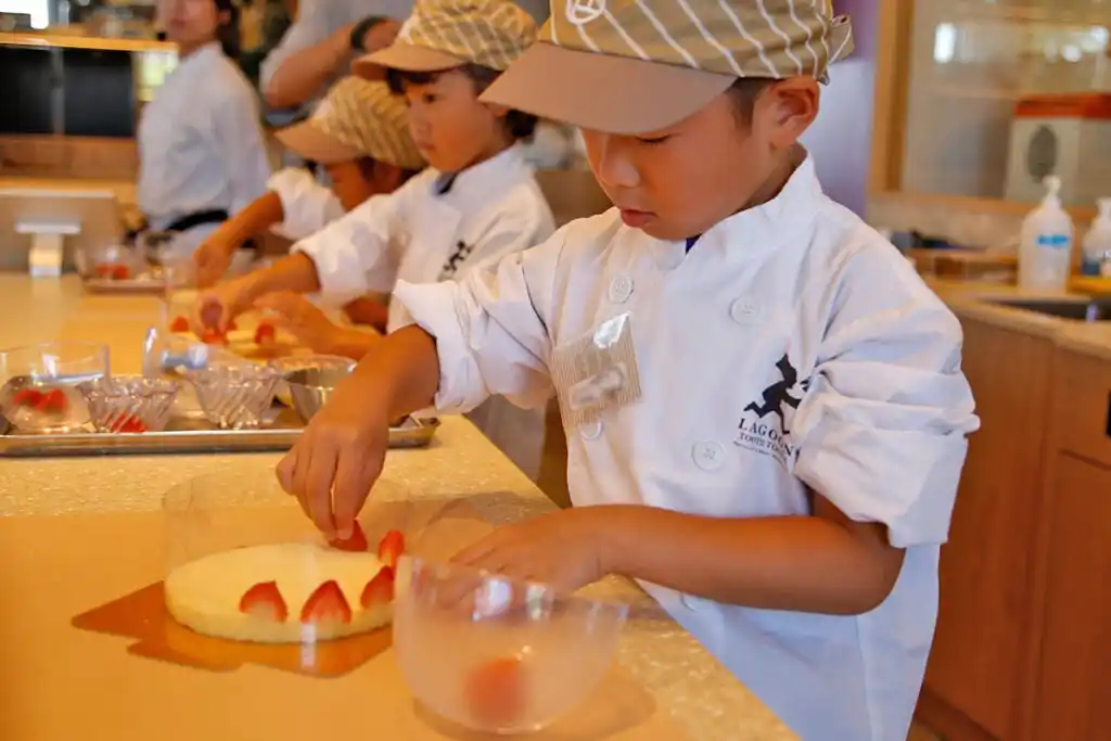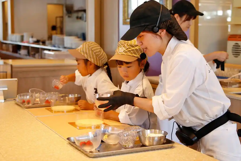 ◆体験内容 ・パティシェの制服着用(コックコートと帽子をご用意しております) ・手洗い講習 ・ホールケーキの土台作り ・フルーツの盛り付け ・デコレーション ・箱詰め 体験後は、キッズパティシエ認定書をプレゼント! |