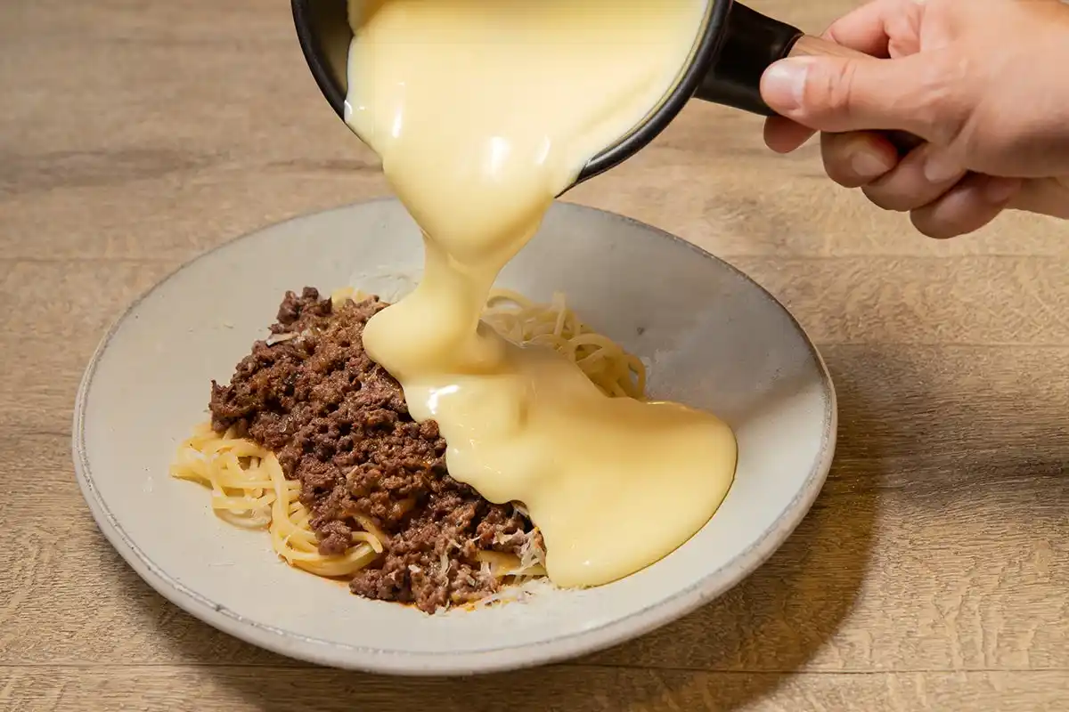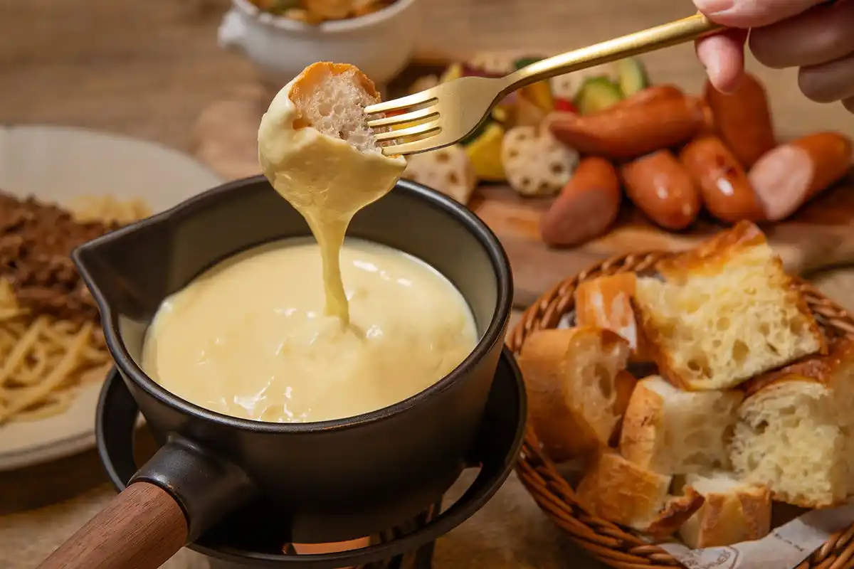 | 自家製パンにも、ごちそうボロネーゼにも、とろ~りチーズフォンデュ。 | |||